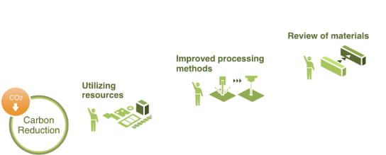 During the manufacturing of the intermediate casing of the unit, the raw material is changed from aluminium to resin. In this process, the emission of carbon dioxide is reduced substantially by 85%. In addition, the method of joining parts has been changed to a welding method using an energy-efficient laser. This will reduce carbon dioxide emissions by approximately 380 tons per year.
