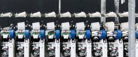 Unified control panels for winding unit, auto-doffer (AD), CBF, package conveyor and bobbin supply area. Operation becomes simpler and easier to use, regardless of the operator’s skill level.